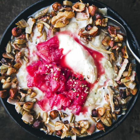 Rabarberkompot og nødde-crunch